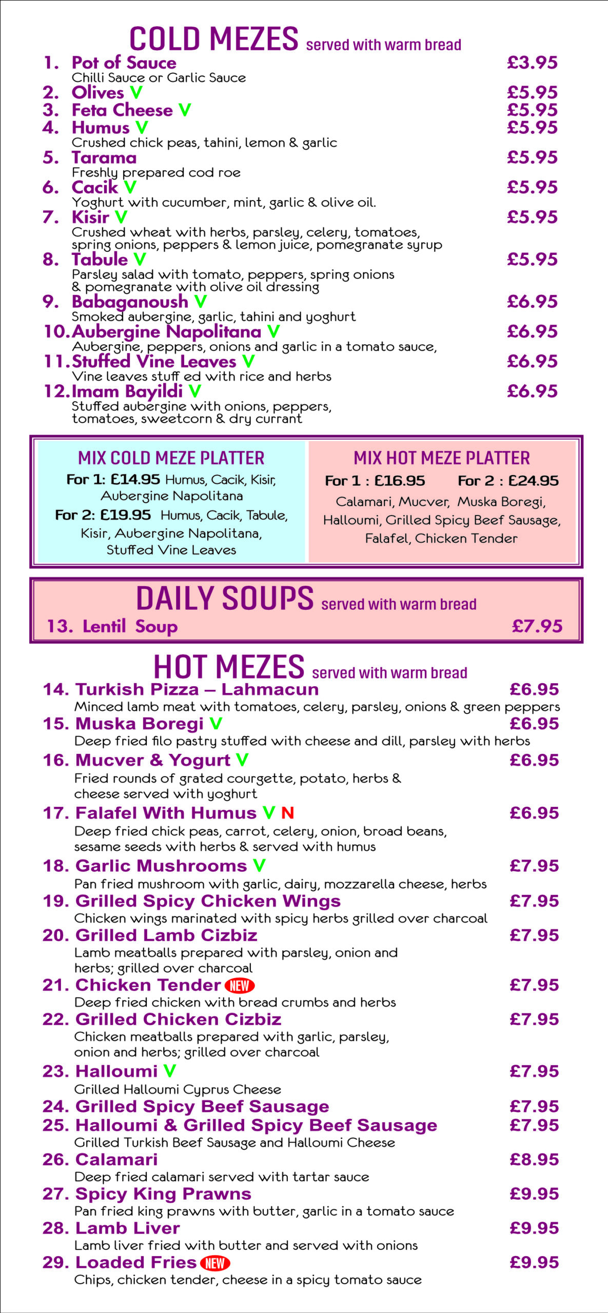• Takeaway Menu