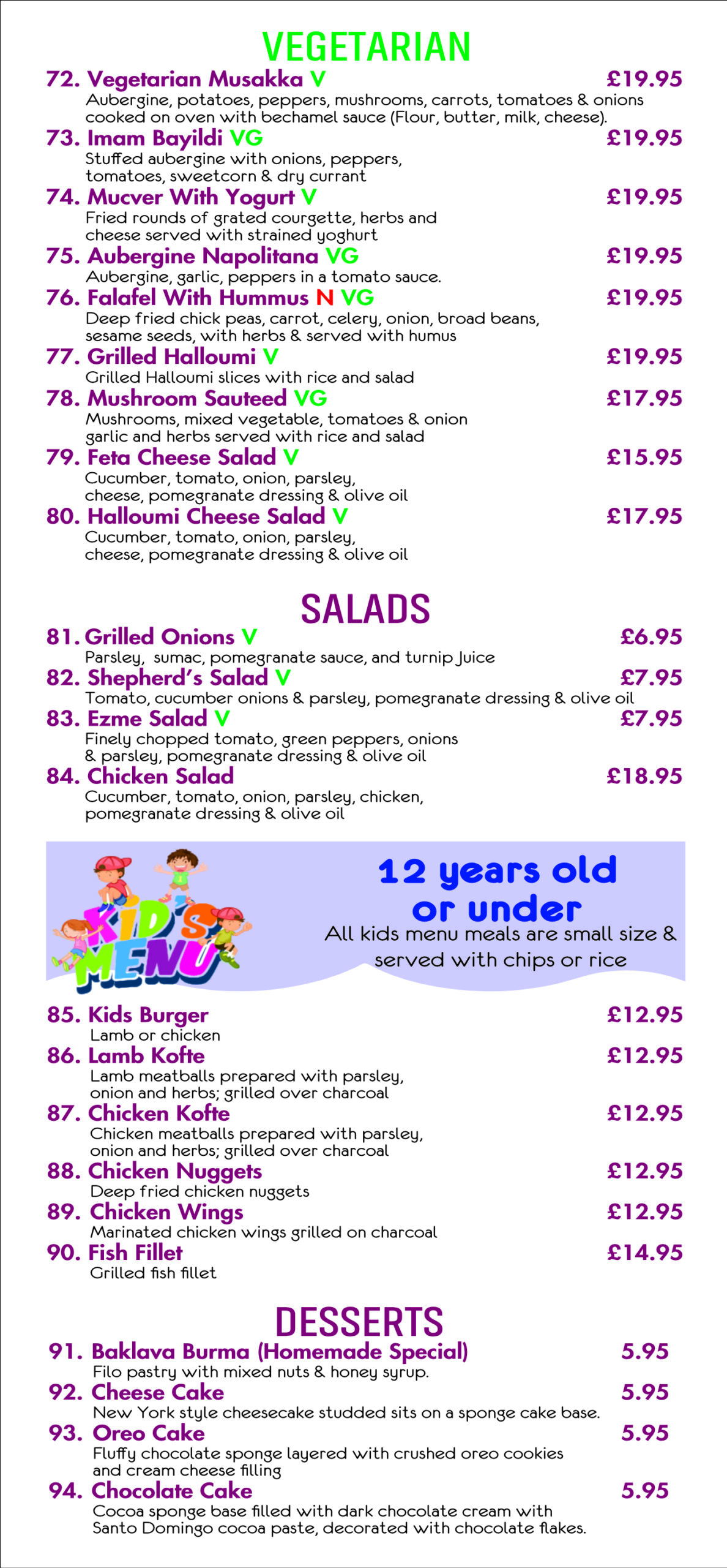 • Desserts Menu